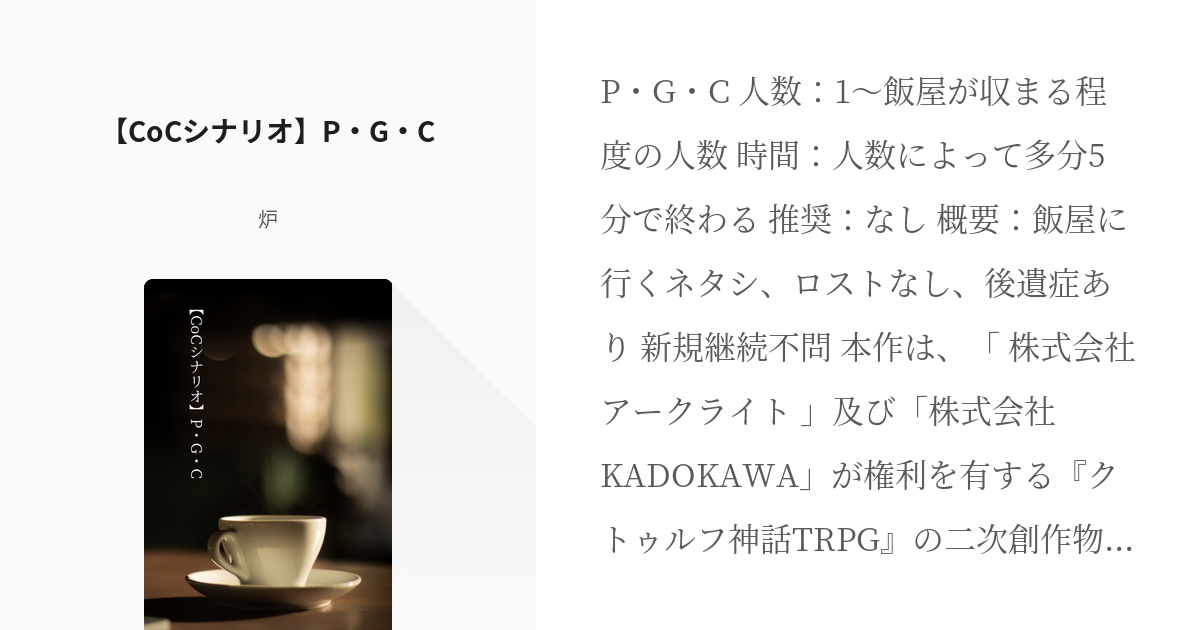 ※2.この記事は『炉』様作成のシナリオ『P・G・C』のネタバレを含みます。